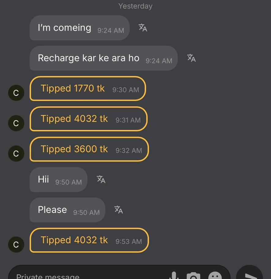 Der König des Raums:Gib insgesamt 50 Tk Trinkgeld!